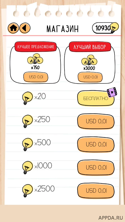 Бесплатные покупки. Можно сделать игру без рекламы и получить много подсказок.