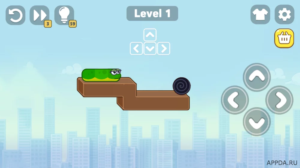 Управление будет максимально просто и удобное - 4 стрелки: вниз, вверх, налево и направо. Пробирайтесь по блокам, которые висят высоко в небе. Задача состоит в том, чтобы дотянуться до яблока и в конечном итоге добраться до портала, который перенесет на новый уровень. Будьте осторожны, ведь одно неправильное движение отправит змейку вниз! Змейка может повторять любой изгиб блока, главное правильно направить ее. Со временем сможете получить крутые скины и красивые локации.