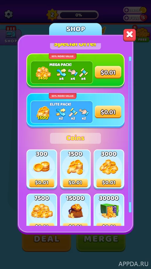 Бесплатные покупки. Можно сделать игру без рекламы и получить много монет.