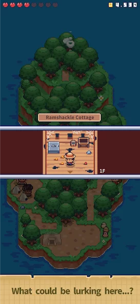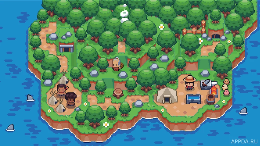 Весь игровой процесс будет происходить на одном экране, что позволит без проблем развиваться. Подберите свой инструмент и начните рубить деревья, чтобы добраться до загадочного дыма на другом конце острова. Не все деревья можно срубить сразу, для этого необходимо повышать уровень своего топора. Также, при каждом срубе, будут отниматься сердца, которые являются своего рода энергией персонажа. Пока она не восстановилась - стройте сооружения. К примеру, это может быть дом, в котором персонаж и будет восстанавливать свои силы.