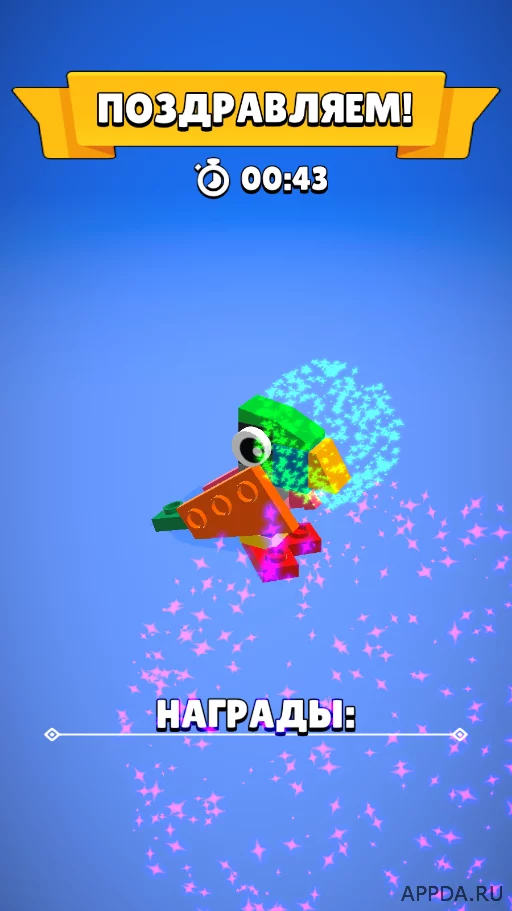 Во время сборки будет идти время, но не обратный отсчет. Это будет влиять на получение награды. На заработанные деньги сможете приобретать следующие наборы. Используйте возможность совершать бесплатные покупки, чтобы получить любое лего.