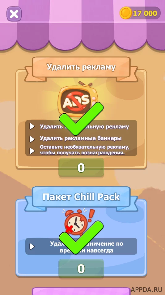 Бесплатные покупки. Можно получить много денег и сделать игру без рекламы.