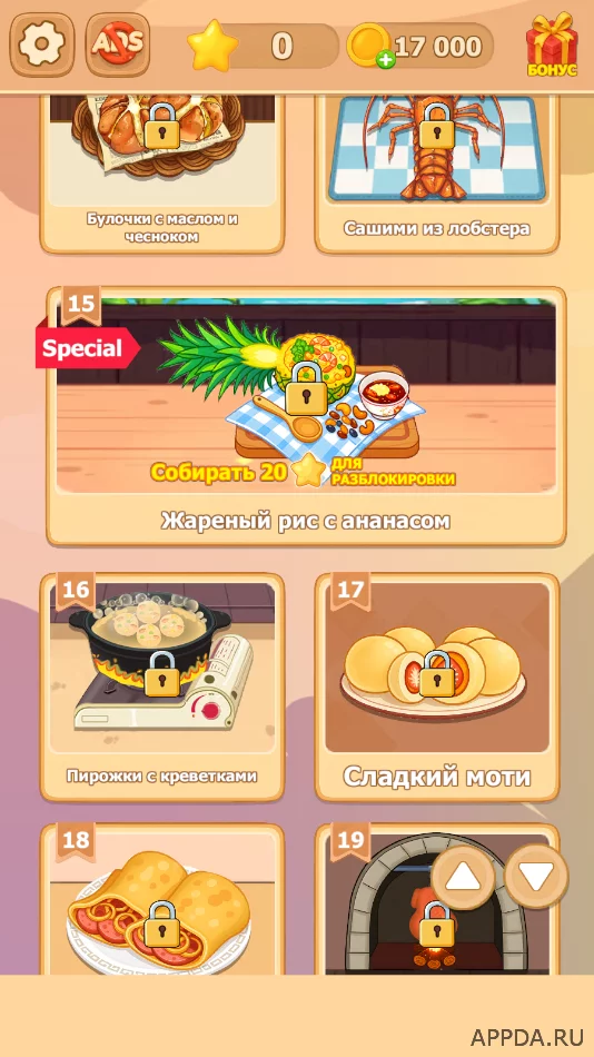 Изучайте все больше интересных рецептов, готовя блюда и читая мини-истории про их происхождение. Во время готовки Вас ждут разнообразные локации и действия, которые необходимо выполнять для создания идеальной еды. Красивый рисованный мир, множество уровней, интересные и необычные рецепты и расслабляющий процесс. Отличие от подобных игр - полное расслабление, и именно поэтому игроки будут готовить не спеша, ведь игра не имеет никакого тайминга.