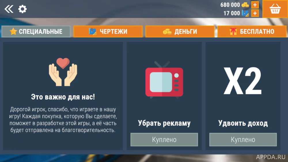 Бесплатные покупки. Можно Сделать игру без рекламы, удвоить доход и получить много денег.