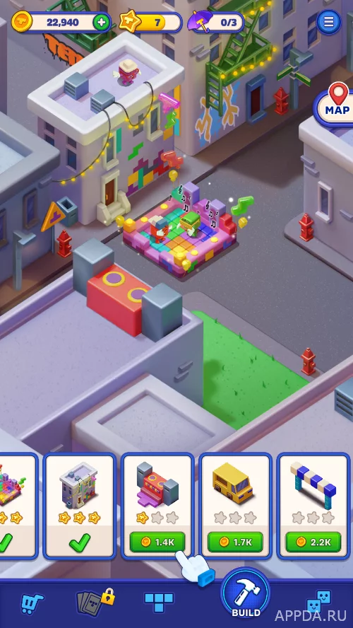 Управляйте блоками в солнечном мире и просто расслабляйтесь. Впереди ждет интереснейшее приключение и разнообразные задачи. Также, сможете побороться со своими друзьями в специальном PvP режиме. Сама же суть игры строится на развитии своей диско-площадки. Проходя уровни, можно будет добавлять больше музыкальных "штук" на танцпол и другие приколюхи. Наслаждаться игрой можно где угодно и когда угодно, ведь она не требует обязательного подключения к WI-FI.