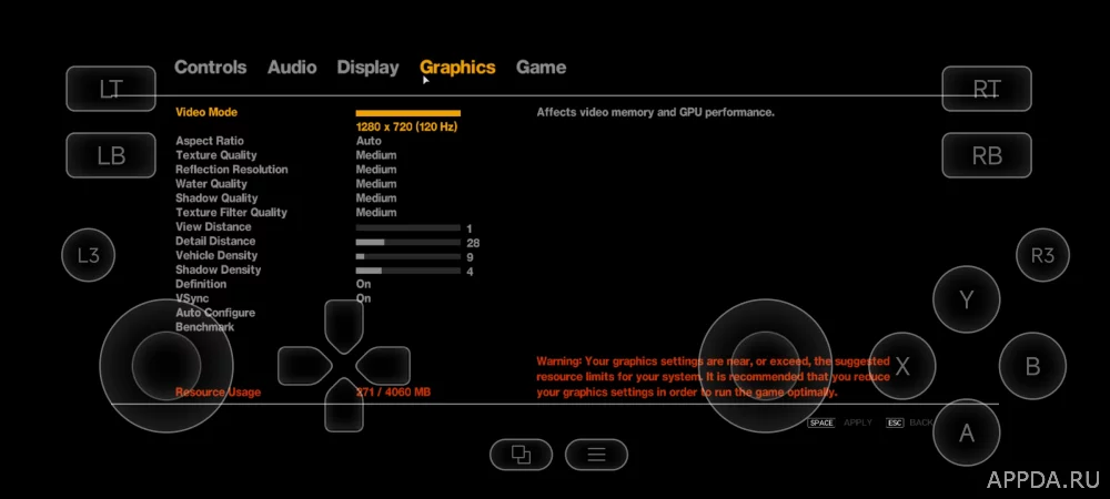 Стоит отметить, что даже на первых версиях Snapdragon 8, ГТА 4 работает лучше через эмулятор, чем на ПК тех годов. Управление будет происходить при помощи стандартного контроллера приложения GameHub. Однако, в настройках можно изменить на клавиатуру и мышь или подключить другой джойстик. Читайте инструкцию перед ссылками скачивания.