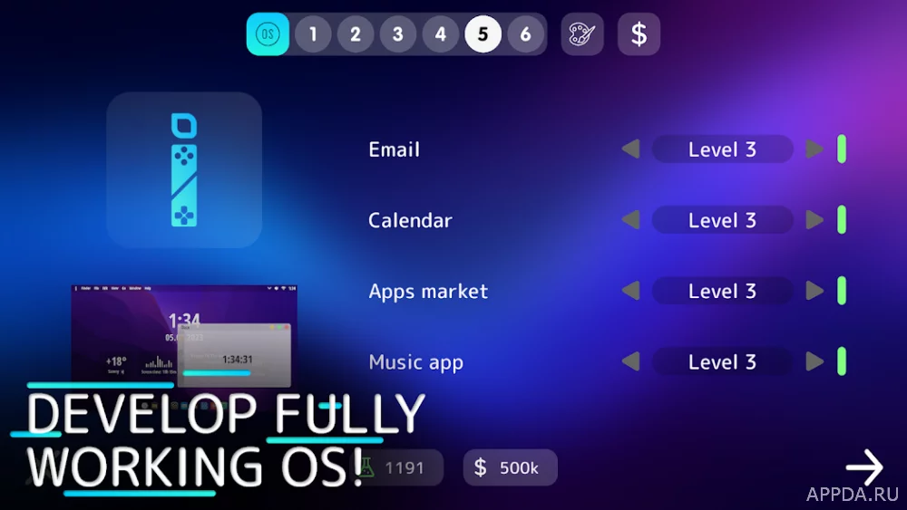 Игра предлагает более 3000 уникальных технологий, сложный режим для любителей, умное поведение оппонентов, запуск OC на игровом ПК, развитие и улучшение офиса и многое другое.