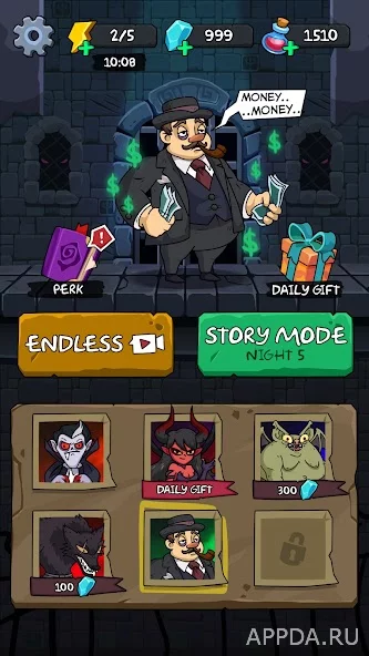 Впереди ждет множество уровней, которые предстоит преодолеть с помощью своего мышления. Забегайте в свою комнату и запирайте двери. Ложитесь в кровать и получайте игровые монеты, за счет которых будете строить различные сооружения, помогающие отпугнуть или уничтожить привидение. Выполняйте поставленные задачи и получать алмазы. Помимо Вас в замке будут присутствовать и другие игроки со своими комнатами, и многие удары будут приходиться и на них. Размещайте в комнате разное оружие, которое сможет наносить значительный урон кошмарному призраку. Каждая ночь длится определенное количество времени.