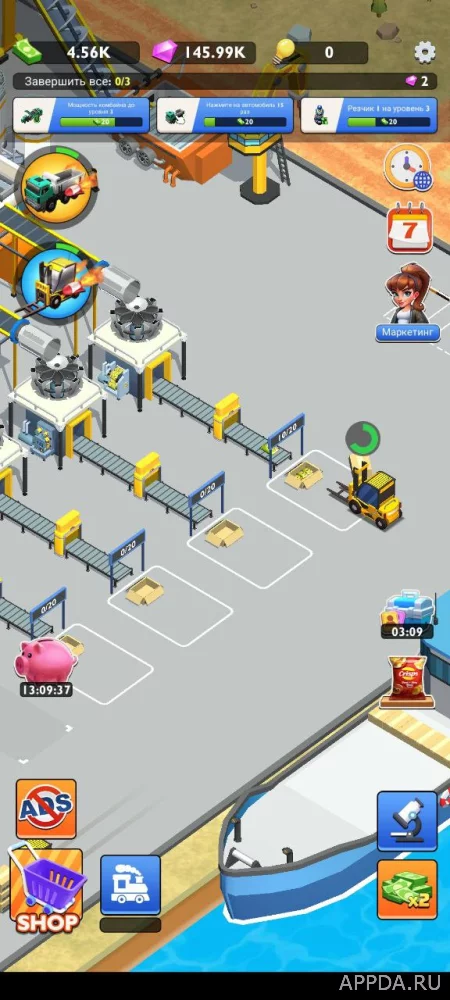 Собирайте картофель, после чего отправляйте его на перерабатывающий завод, где будут произведены следующие махинации: очистка, нарезка, обжарка и упаковка. После чего продукция отправится на продажу. Продавайте вкуснейшие виды чипсов, чтобы зарабатывать огромные деньги. На полученные средства можно всячески модернизировать завод, что позволит постоянно расширяться и зарабатывать еще больше. Выполняйте поставленные задачи для дополнительного заработка в виде алмазов. Изначально производство будет иметь очень низкую эффективность, но с вашей помощью она будет расти. Стройте дополнительные секции, увеличивайте масштаб завода и готовьте самую вкусную продукцию в мире.