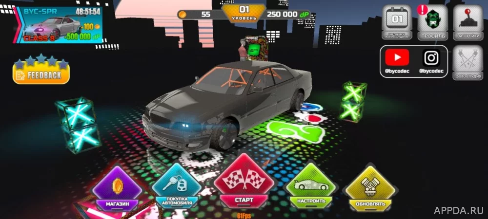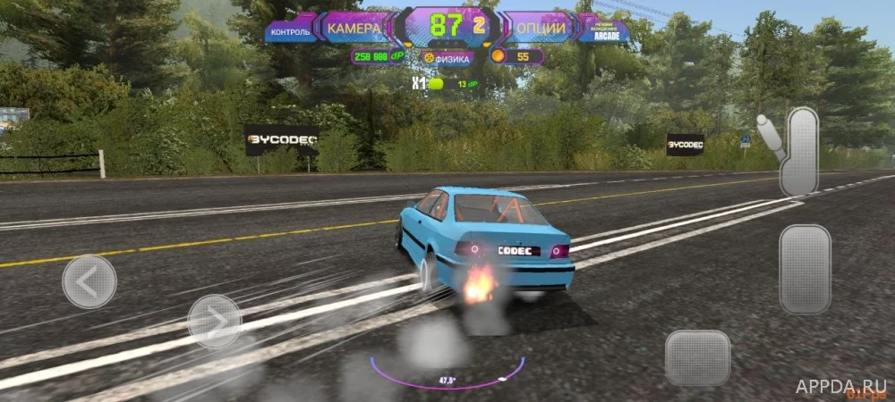 Оцените свыше 30 дрифт-каров и качественную анимацию, которая будет сопровождать во время выполнения заноса и удержания автомобиля. Участвуя в гонках будете зарабатывать очки опыта и другие награды. Их можно потратить на улучшения своего автомобиля: бампера, спойлеры, новые диски, цвет кузова и многое другое. Улучшайте двигатель, коробку передач и другие технические детали. Соревнуйтесь на уникальных дорогах и в городах.