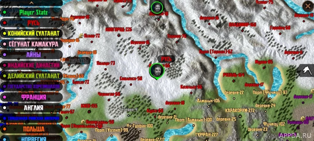 Создайте персонажа и придумайте название государства, а также выберите регион, в котором начнётся игра. Имеются следующие варианты - Русь, Конийский султанат, Сёгунат Камакура, Айны, Франция, Англия и другие. После этого выберите роль, которая влияет на начальные условия игры. Это может быть рыбак, разжалованный солдат, охотник, кузнец, фермер, торговец или пастух.