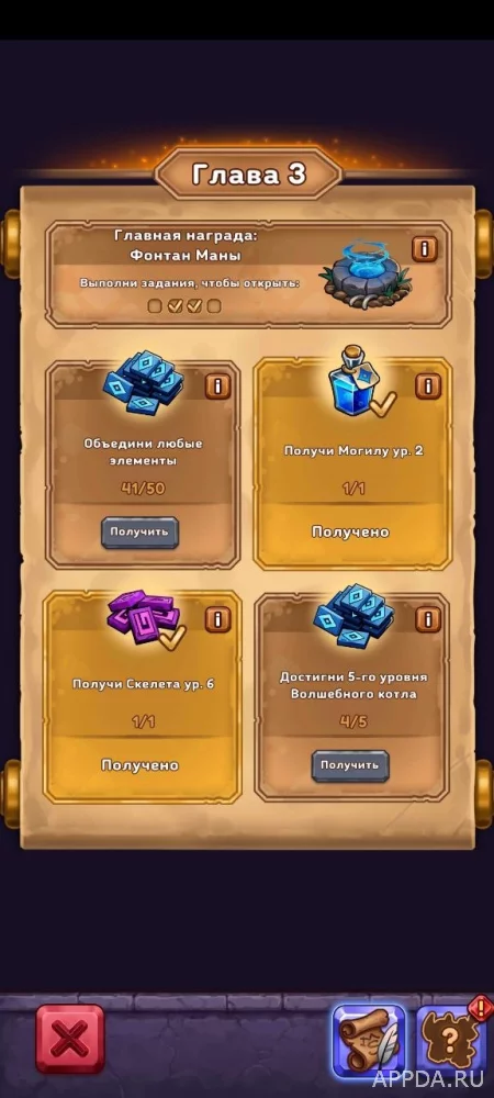 Каждая глава - отдельный этап истории с уникальными заданиями и наградами. Прокачивайте объекты, взаимодействуйте с предметами и существами. Награды появляются мистическим образом в хрустальном шаре, из которого можно получить редкие ресурсы, необходимые для дальнейшего развития. Гладя Бастета, сможете восстанавливать ману и ускорять прогресс.