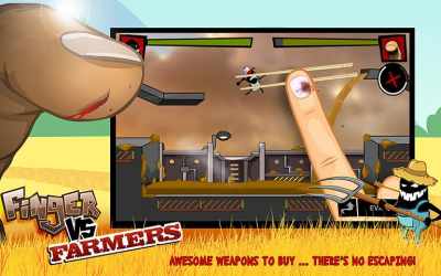 Также главной особенностью игры Finger VS Farmers является ее очень сочная и насыщенная графика. Без нее игра бы выглядела не так уж и отлично. Если Вы просто хотите поубивать время или развлечься, то это то, что нужно! Вас ждут красивые и хорошо проработанные спецэффекты, которые дополнят геймплей и сделают его ещё более интересным. Игровой же вид будет сбоку и в 2D формате. По части управления все очень просто и вы без проблем справитесь одной рукой!